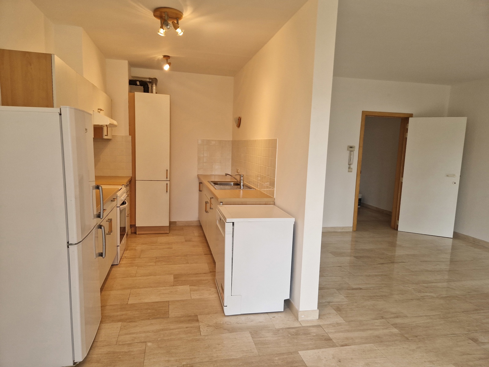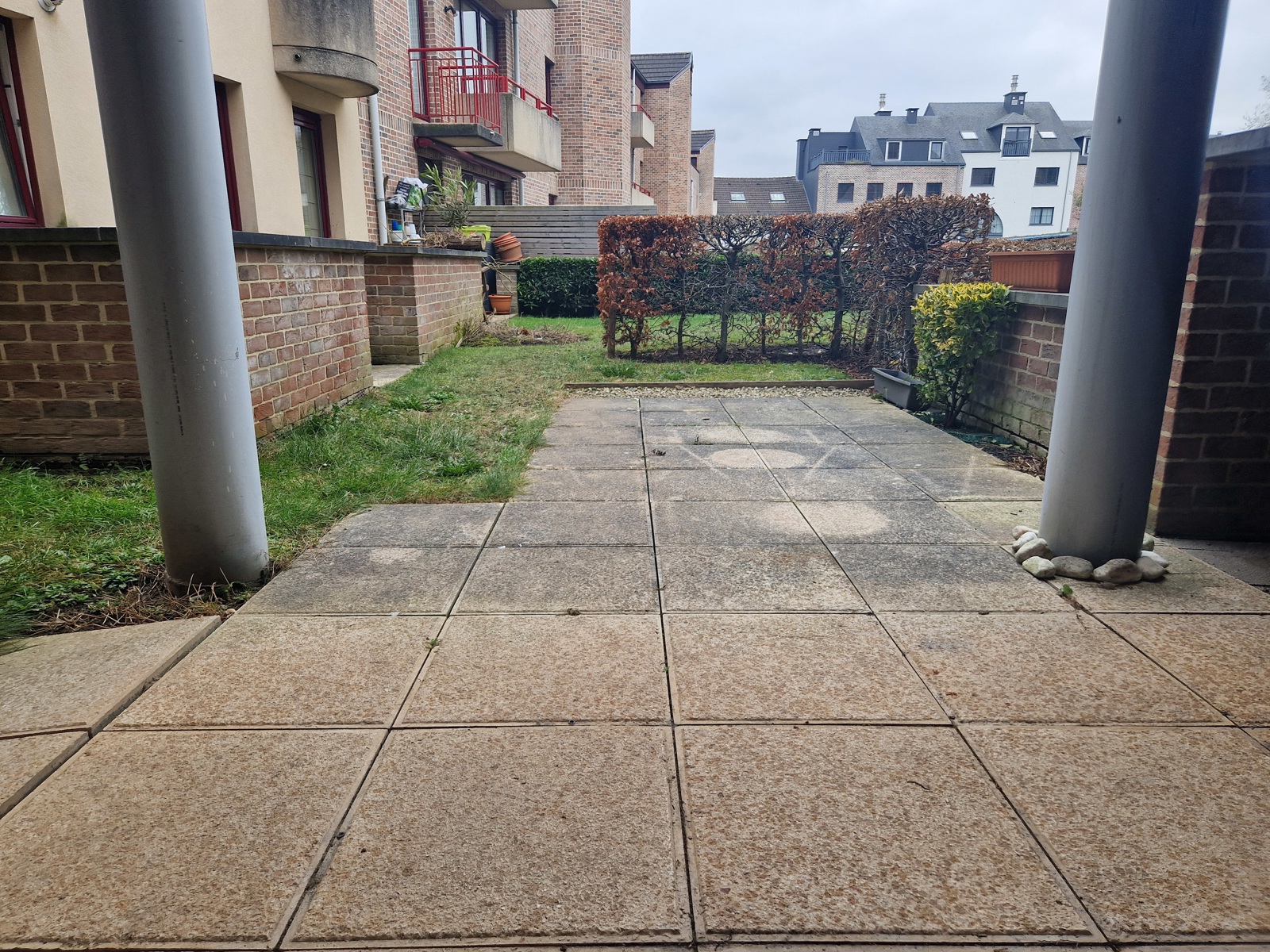 OPTION OPTION OPTIONBelle opportunité en plein centre d'Ottignies, cet appartement idéalement situé sur le site du Douaire, agencé en rez-de-jardin sur l'arrière de la copropriété (immeuble de 2002), vous propose un hall d'entrée pratique, un beau séjour lumineux de 30m² avec accès terrasse et petit jardinet non clôturé parfaitement orientés sud-ouest, une cuisine ouverte totalement équipée, 2 chambres confortables de 12,5 et 10m² dont une avec petit balcon, une salle de bains, un local buanderie et un WC séparé. Pas de cave, pas de parking privatif, MAIS un grand parking public GRATUIT en face de l'immeuble ! Très bon PEB B, chauffage individuel au gaz de ville. Loyer demandé: 825 euros/mois + provision pour charges communes de 90 euros/mois. Libre immédiatement. Animaux admis. N'hésitez plus ! Contactez Laurence au 0471/43.48.59 pour une visite.
