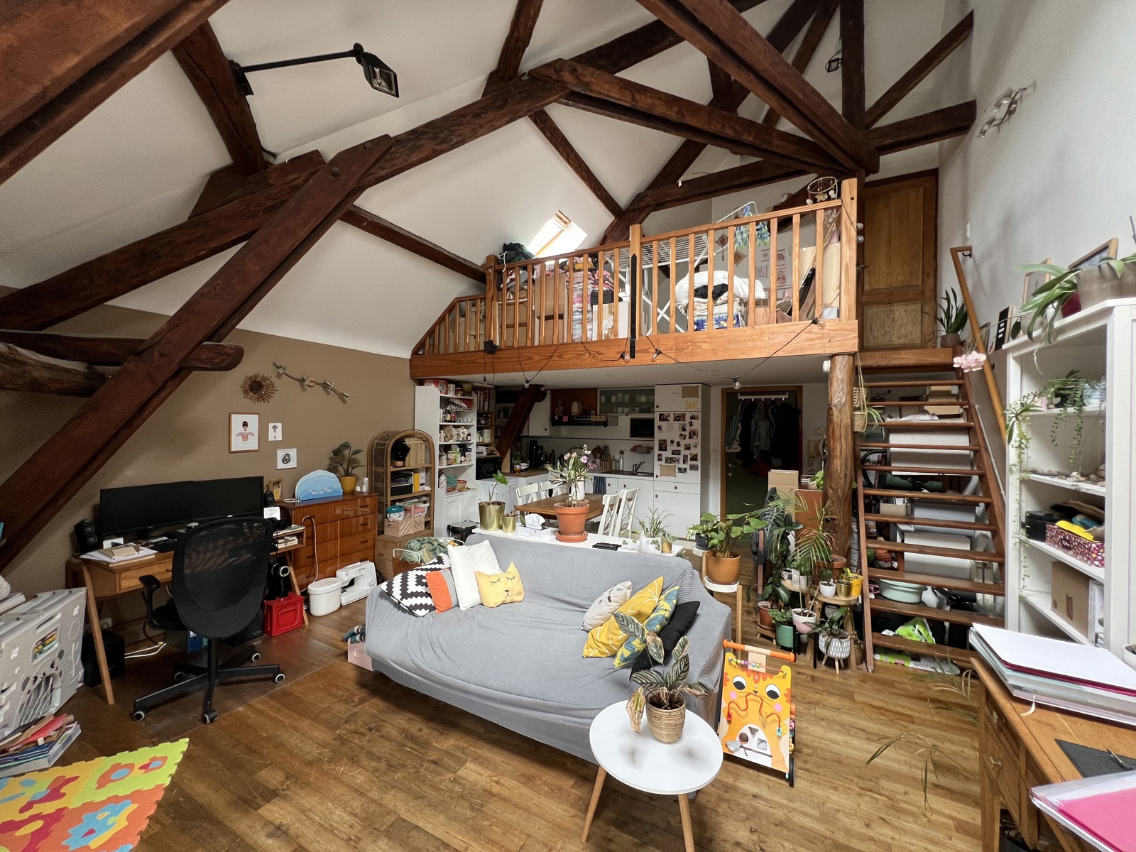 Appartement/Studio lumineux de +/- 60 m², au 2étage d'un immeuble sans ascenseur, bénéficiant d'une très bonne situation stratégique : en face de la gare et à proximité immédiate de toutes les commodités du centre-ville (commerces, restaurants, écoles, etc.). Le studio se compose d'une grande pièce de vie (séjour + cuisine équipée) de 38 m² sous combles, avec poutres apparentes ; d'un espace chambre sur mezzanine de 13 m² et d'une salle de bain de 7m² (baignoire, 1 meuble lavabo et 1 WC). Beaucoup de charme ! Le studio dispose d'une cave au rez-de-chaussée. Pas d'extérieur et pas d'emplacement de parking privé ! Idéal pour une personne seule ou un couple. Bail d'1 an. Loyer : 650 € + 90 € de charges (chauffage et eau compris). Une visite ? Contactez Marie V. au 0496/53.75.41 https://www.ccv-immobilier.be/fr/bien/a-louer/appartement/1490-court-st-etienne/6080108