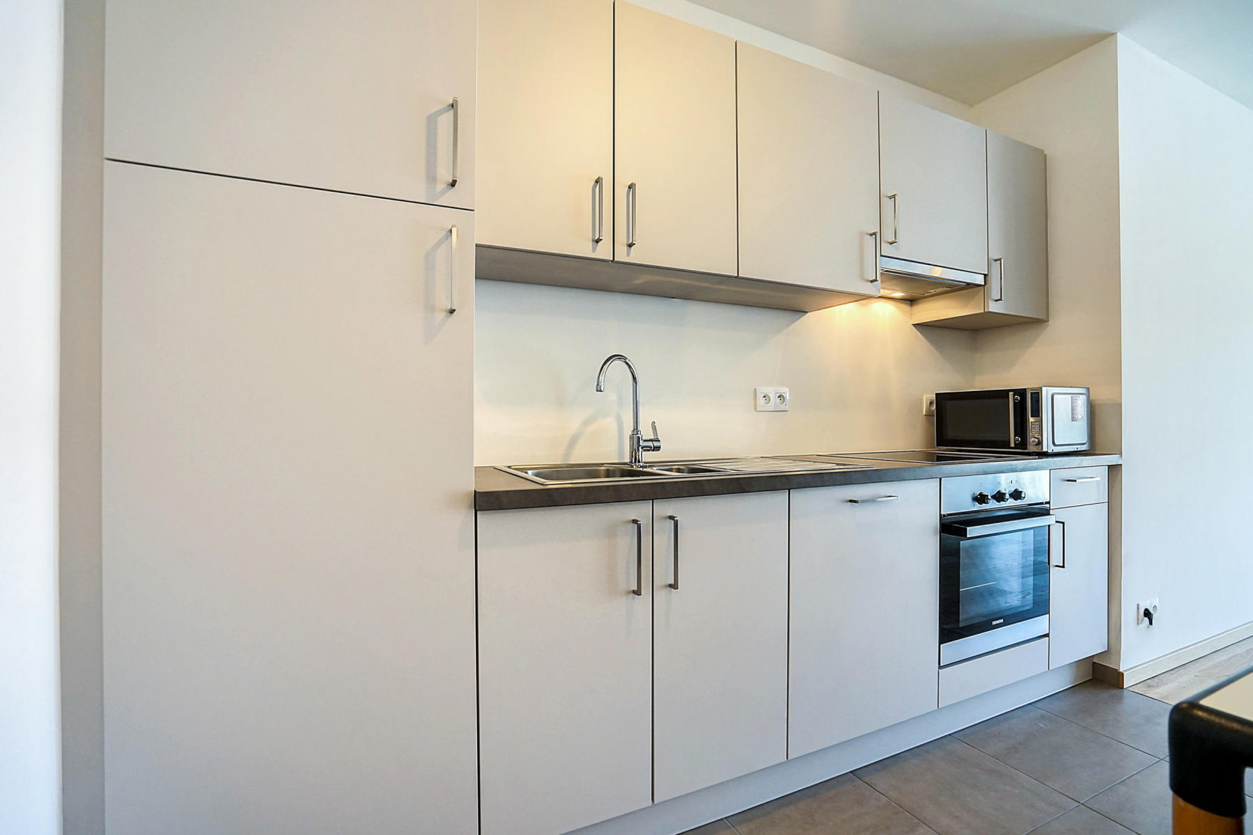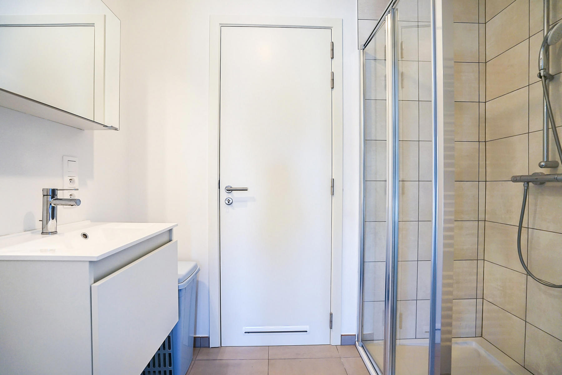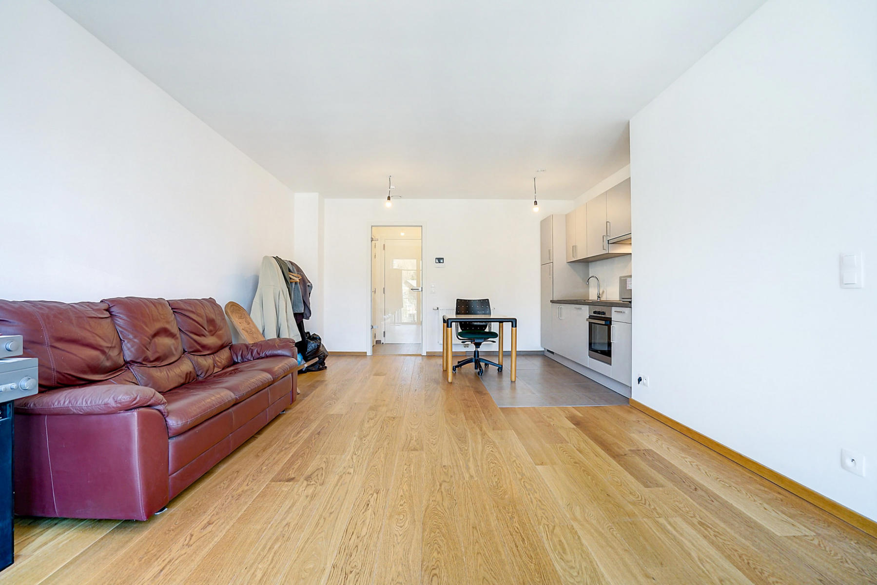 Situé au 2ème étage d'un immeuble de 2020, lumineux appartement 1 chambre avec terrasse orientée Sud/Ouest. Il se compose comme suit : un hall d'entrée avec un WC séparé, un bel espace de vie de 30m² très lumineux comprenant le séjour et la cuisine équipée, une belle chambre donnant accès direct à la salle de douche et à la buanderie. Vous y trouverez également une cave et un emplacement de parking intérieur et sécurisé. Commerces, transports et écoles à 2 pas. Vente sous régime TVA.