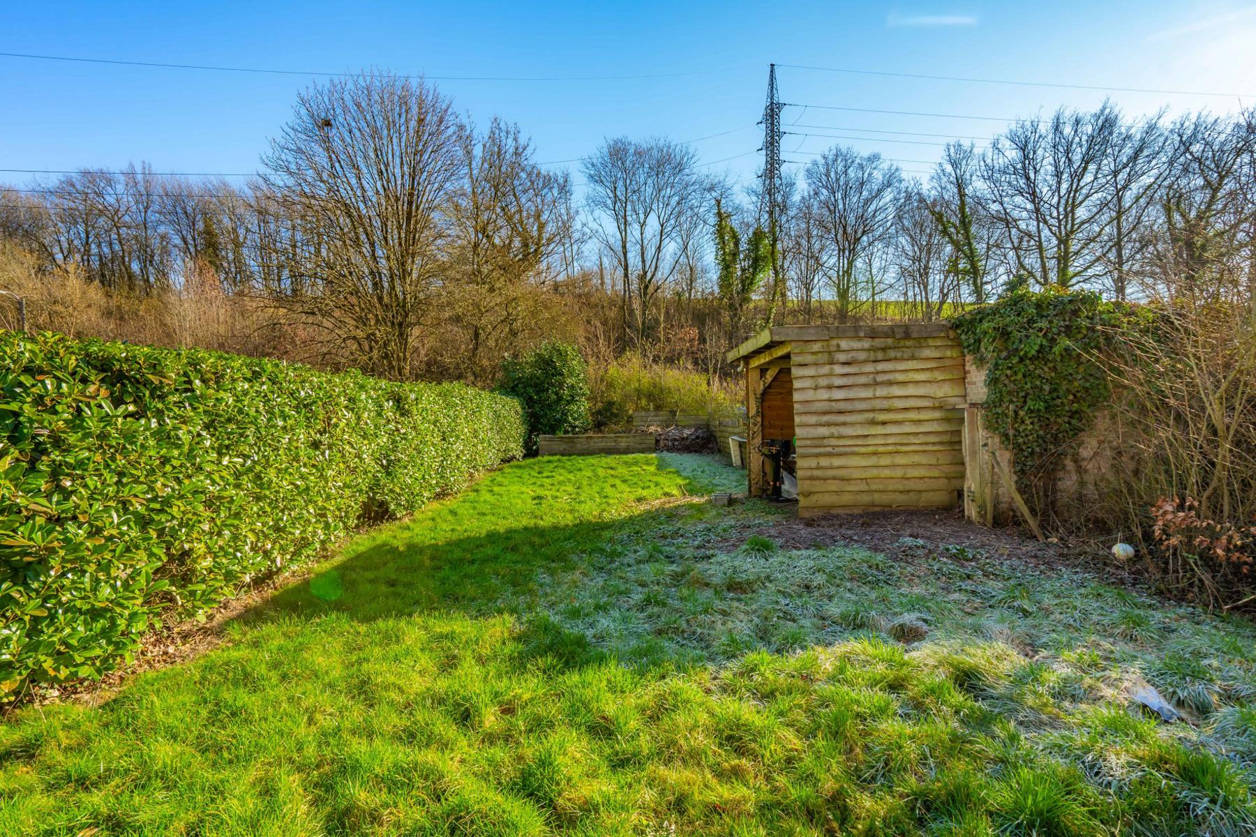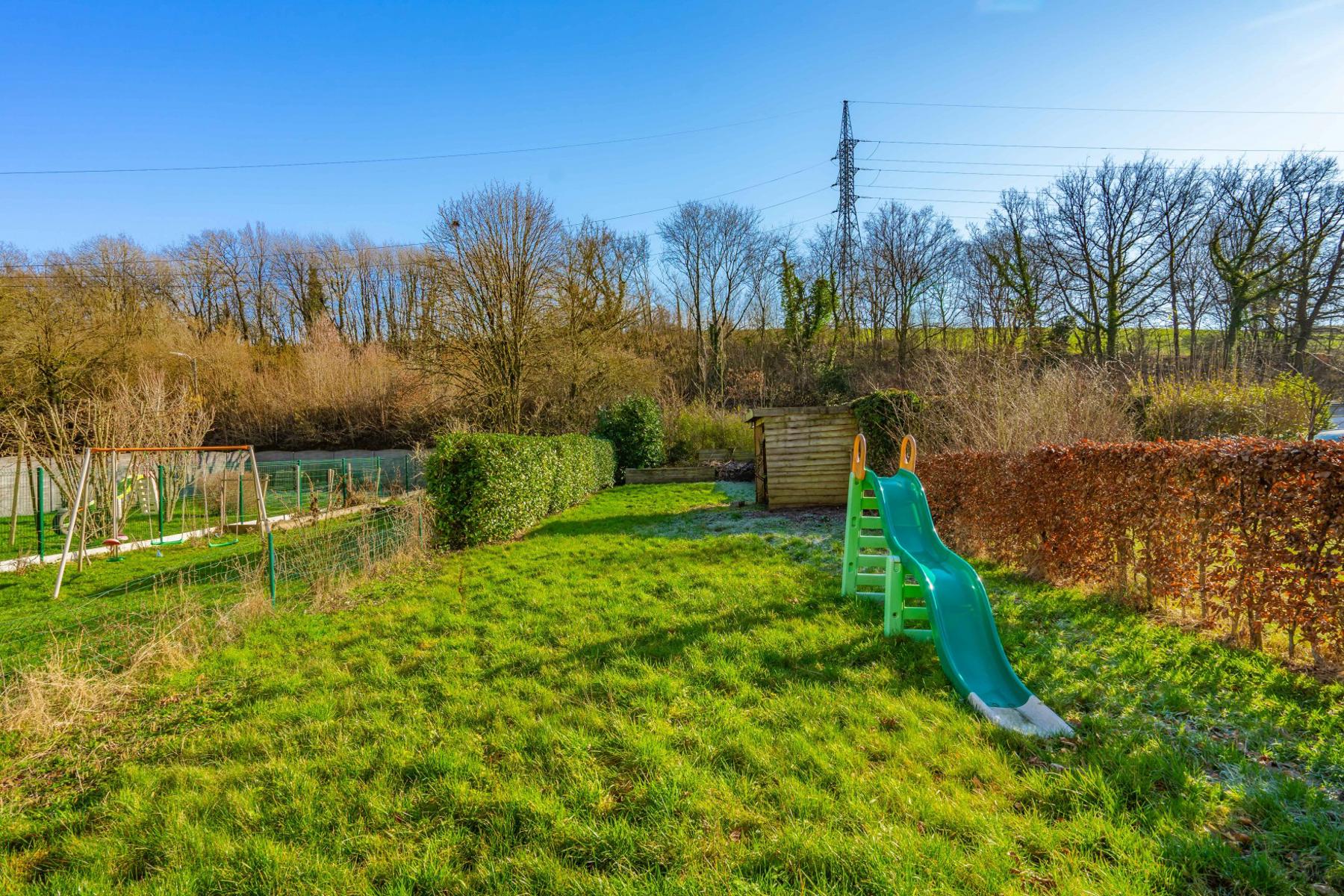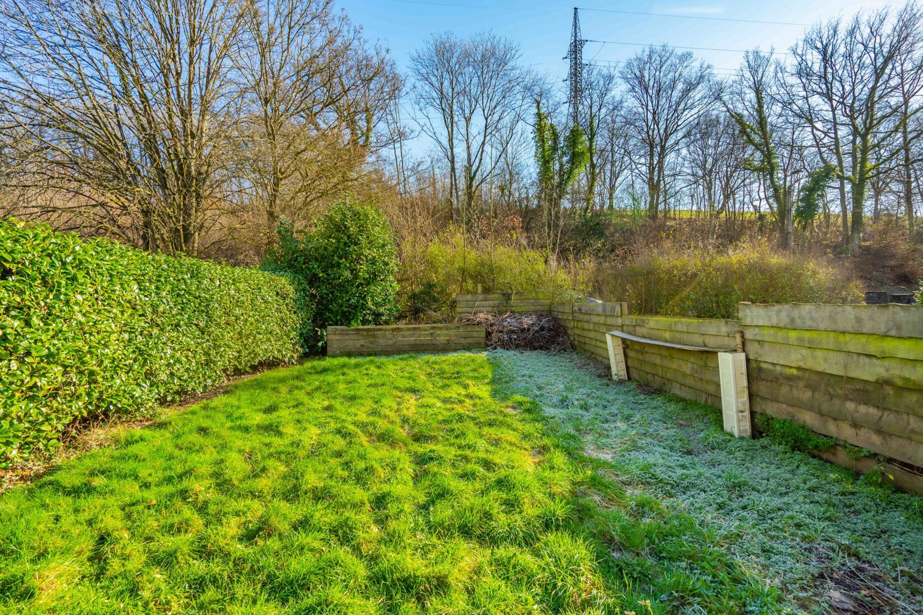 | Jardin (détails) | est, déclivité, aménagé pelouse, Fermé haies clôtures |