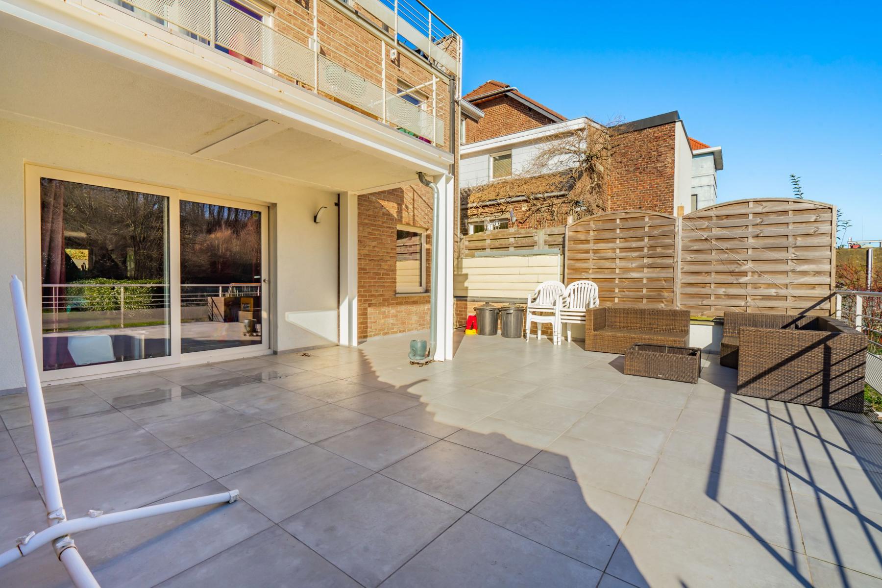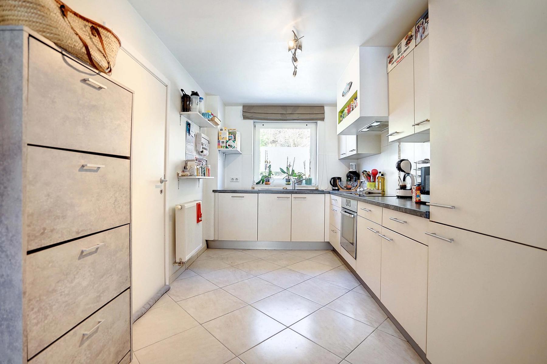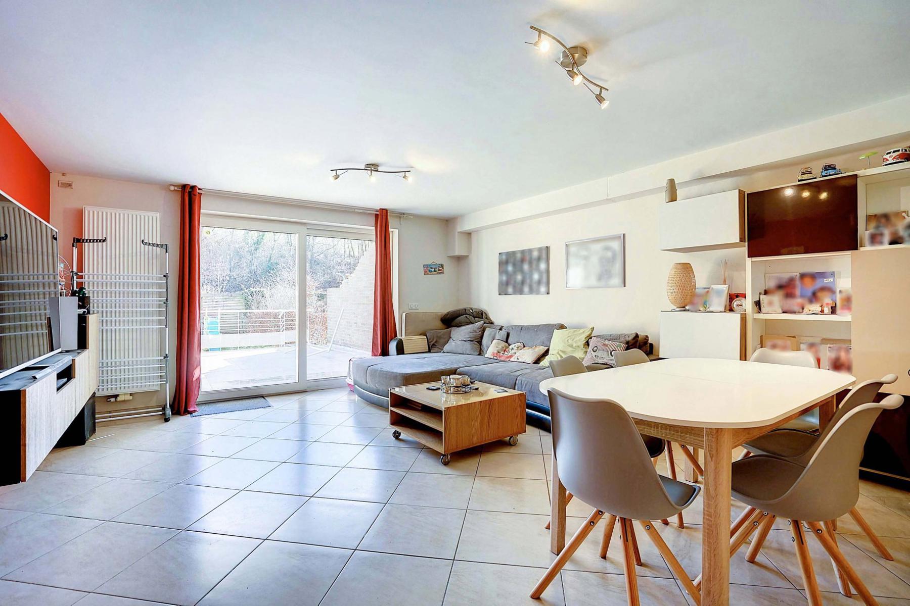 OPTION OPTION OPTION A quelques minutes du centre de Court-Saint-Etienne, de la gare et des commerces, CCV Immobilier vous propose ce magnifique appartement de +/- 80m², au rez de chaussée d'un petit immeuble récent (2009) avec 3 copropriétés seulement. Moderne, il offre un spacieux séjour de +/- 41m² avec salle à manger et cuisine ouverte et équipée, 2 belles chambres de 10m² et 12m², une salle de douche et un W.C. indépendant. Beaux espaces extérieurs dont une grande terrasse avec vue de +/- 48m² exposée sud et un agréable jardin plat et facile d'entretien. Autres atouts: Place de parking extérieur privative, compteurs individuels (gaz, électricité et eau) et excellent PEB B ! Opportunité rare ! A saisir sans tarder ! Les 2 autres appartements sont également à vendre. Pour visiter contacter Marie au 0474/88.59.30.
