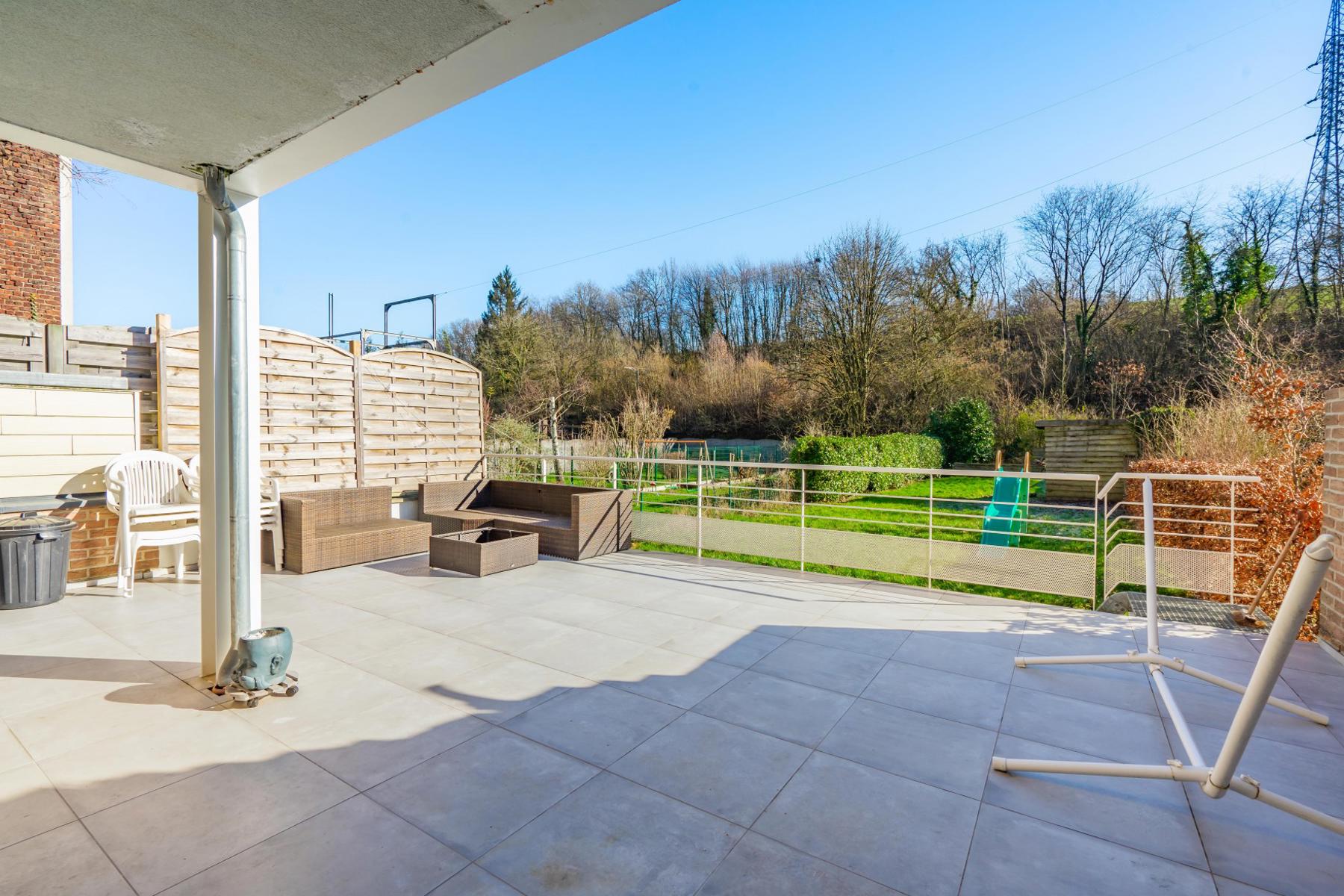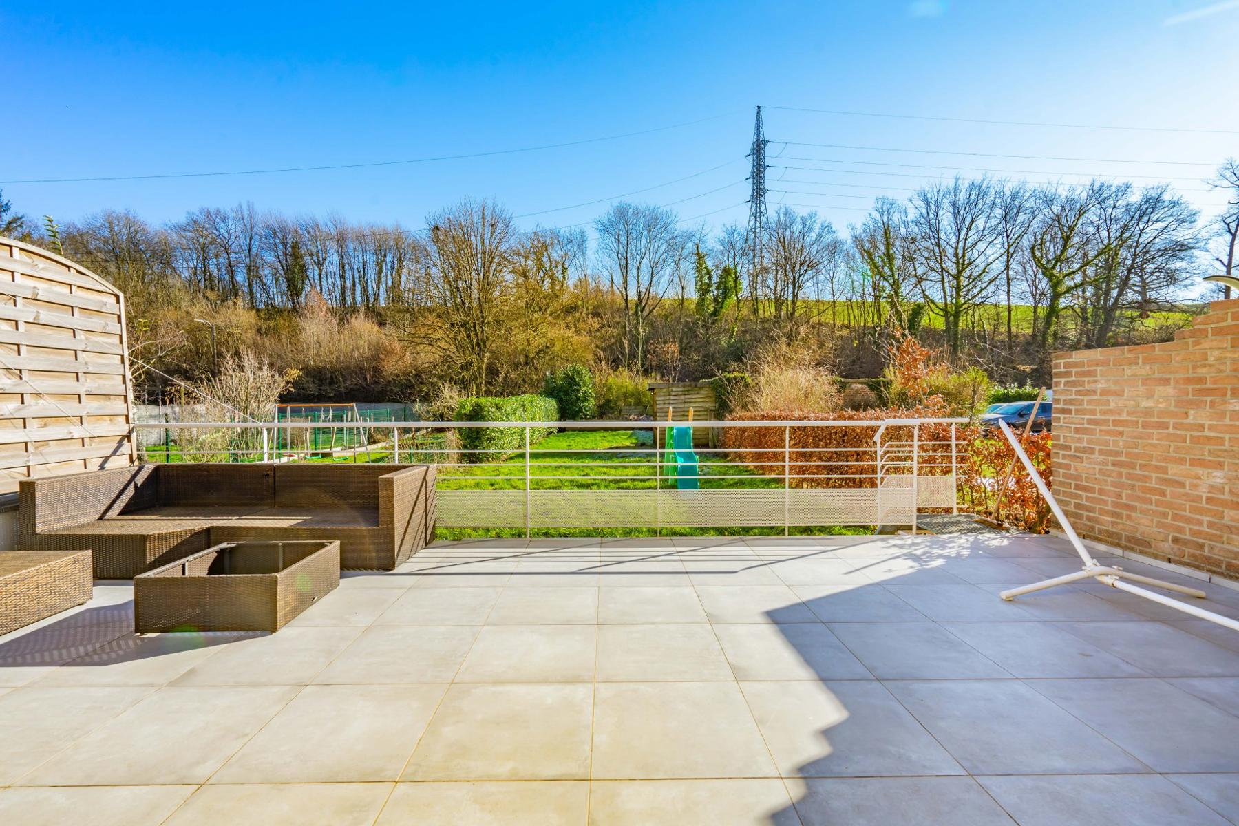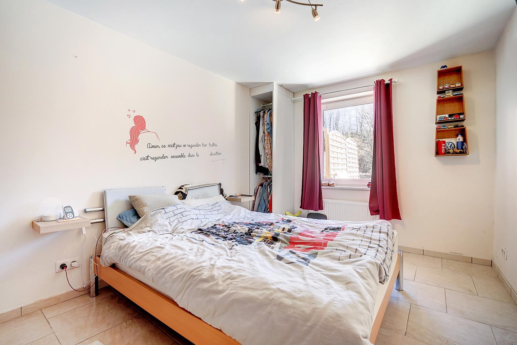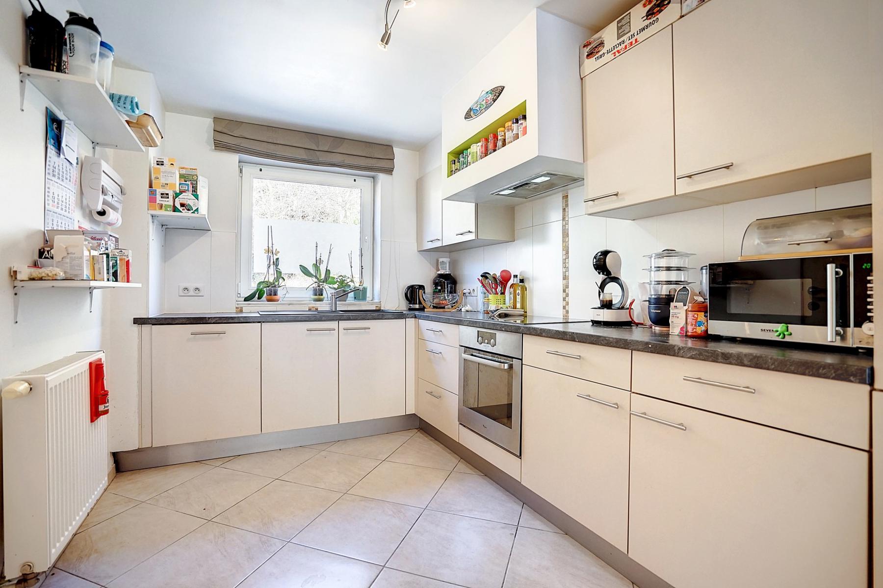 OPTION OPTION OPTION A quelques minutes du centre de Court-Saint-Etienne, de la gare et des commerces, CCV Immobilier vous propose ce magnifique appartement de +/- 80m², au rez de chaussée d'un petit immeuble récent (2009) avec 3 copropriétés seulement. Moderne, il offre un spacieux séjour de +/- 41m² avec salle à manger et cuisine ouverte et équipée, 2 belles chambres de 10m² et 12m², une salle de douche et un W.C. indépendant. Beaux espaces extérieurs dont une grande terrasse avec vue de +/- 48m² exposée sud et un agréable jardin plat et facile d'entretien. Autres atouts: Place de parking extérieur privative, compteurs individuels (gaz, électricité et eau) et excellent PEB B ! Opportunité rare ! A saisir sans tarder ! Les 2 autres appartements sont également à vendre. Pour visiter contacter Marie au 0474/88.59.30.
