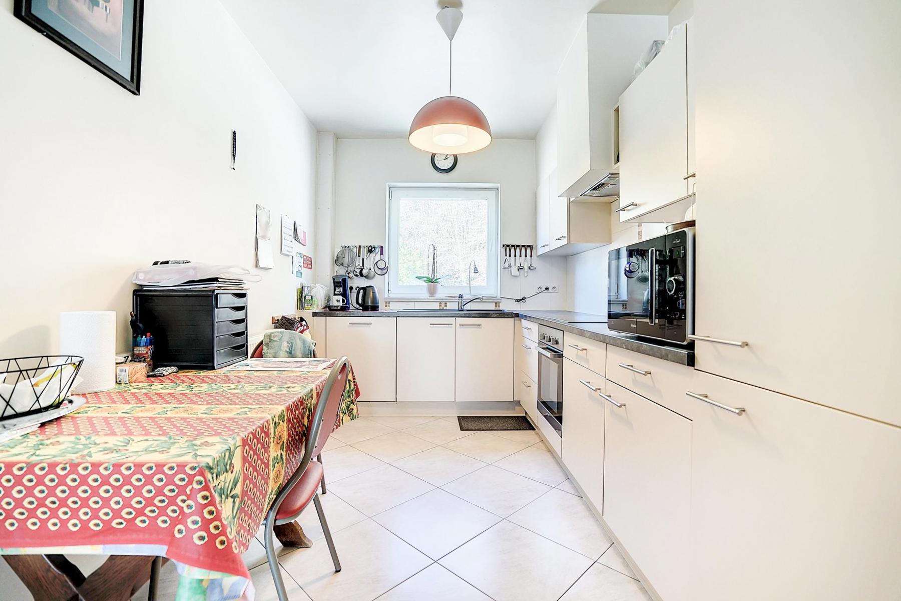 OPTION OPTION OPTION Sis dans un petit immeuble de 2009 sans ascenseur comprenant 3 appartements, venez découvrir ce bel appartement situé au 1er étage. Il se compose d'un agréable living avec une vue verdoyante, une cuisine équipée ouverte sur le living, 2 belles chambres de 9 et 12m², salle douche avec douche italienne, WC séparé et buanderie. Il est agrémenté d'une terrasse de 10m² en façade arrière exposée sud/est. Les qualités de l'immeuble se caractérisent tant par la performance au niveau énergétique (PEB A), que par l'agencement de l'appartement et le peu de charges communes. Un emplacement de parking privé complète l'ensemble. Centre de Court-Saint-Etienne à quelques minutes à pied et bus à proximité immédiate! L'appartement est actuellement loué. Libre 6 mois après l'acte si occupation personnelle. Une visite ? Contactez Marie au 0474/88.59.30.