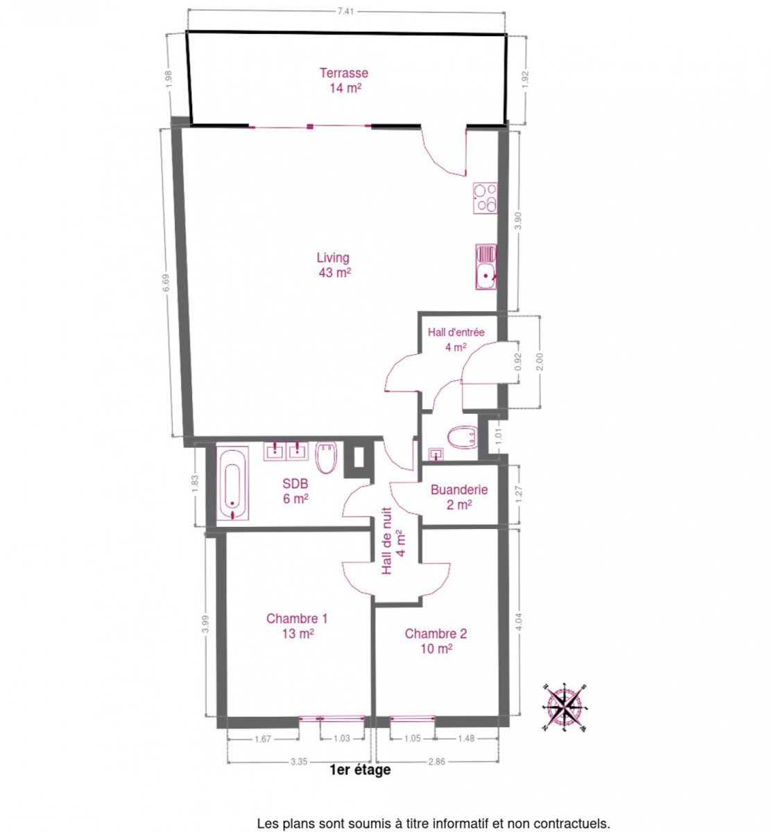 | Surface de terrasse 1 | 14 m² |