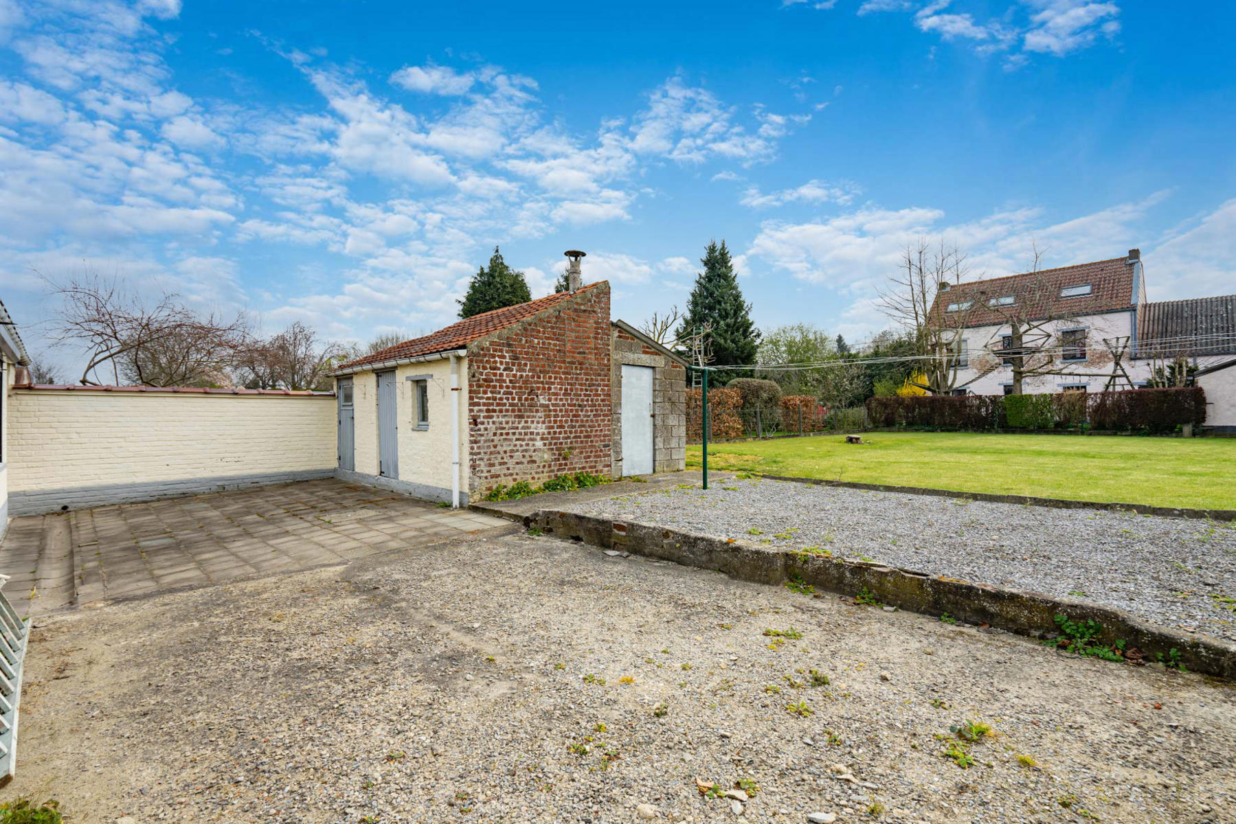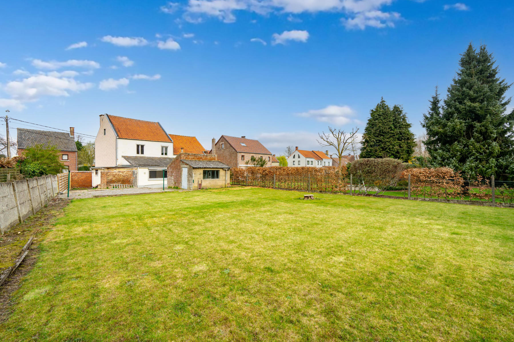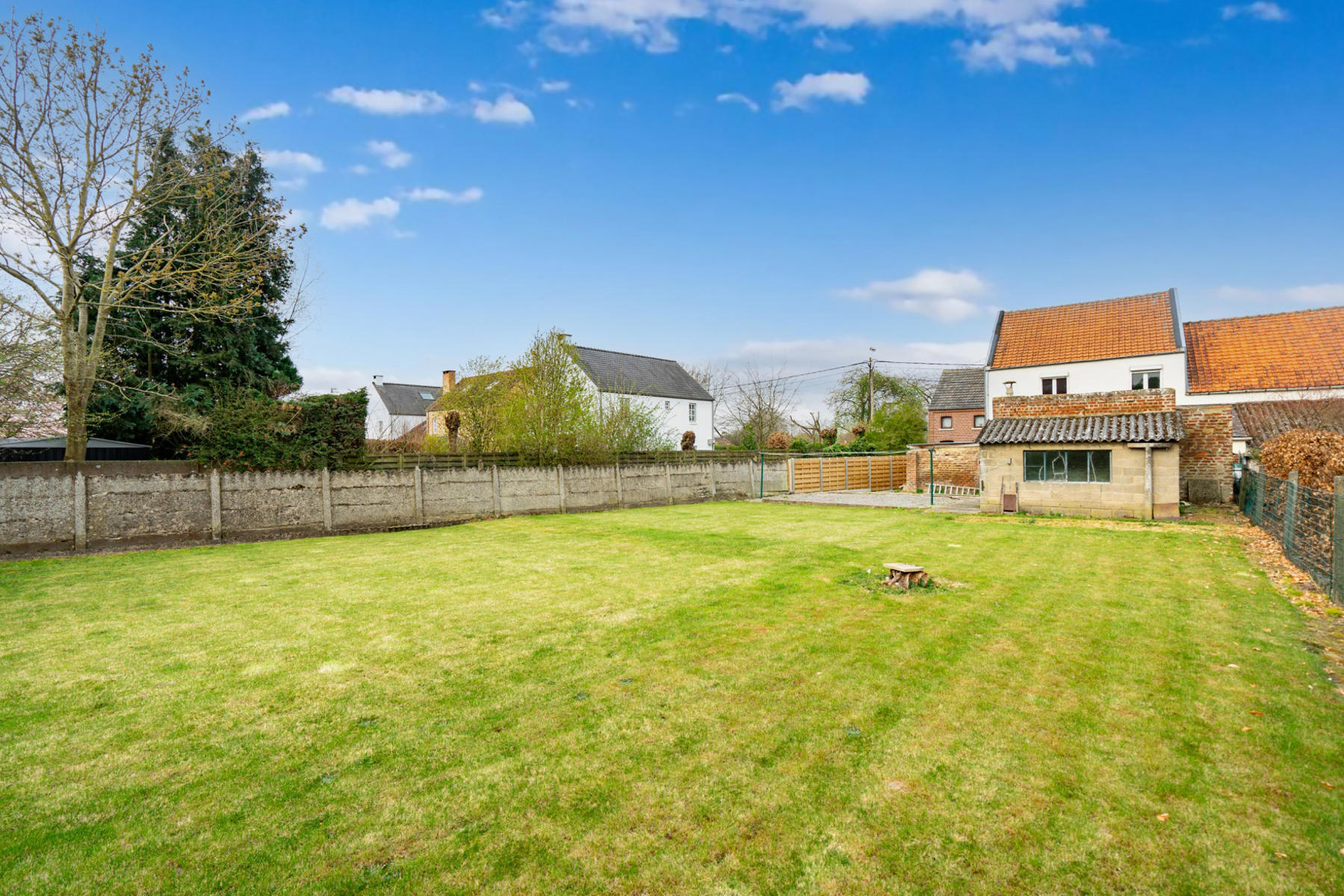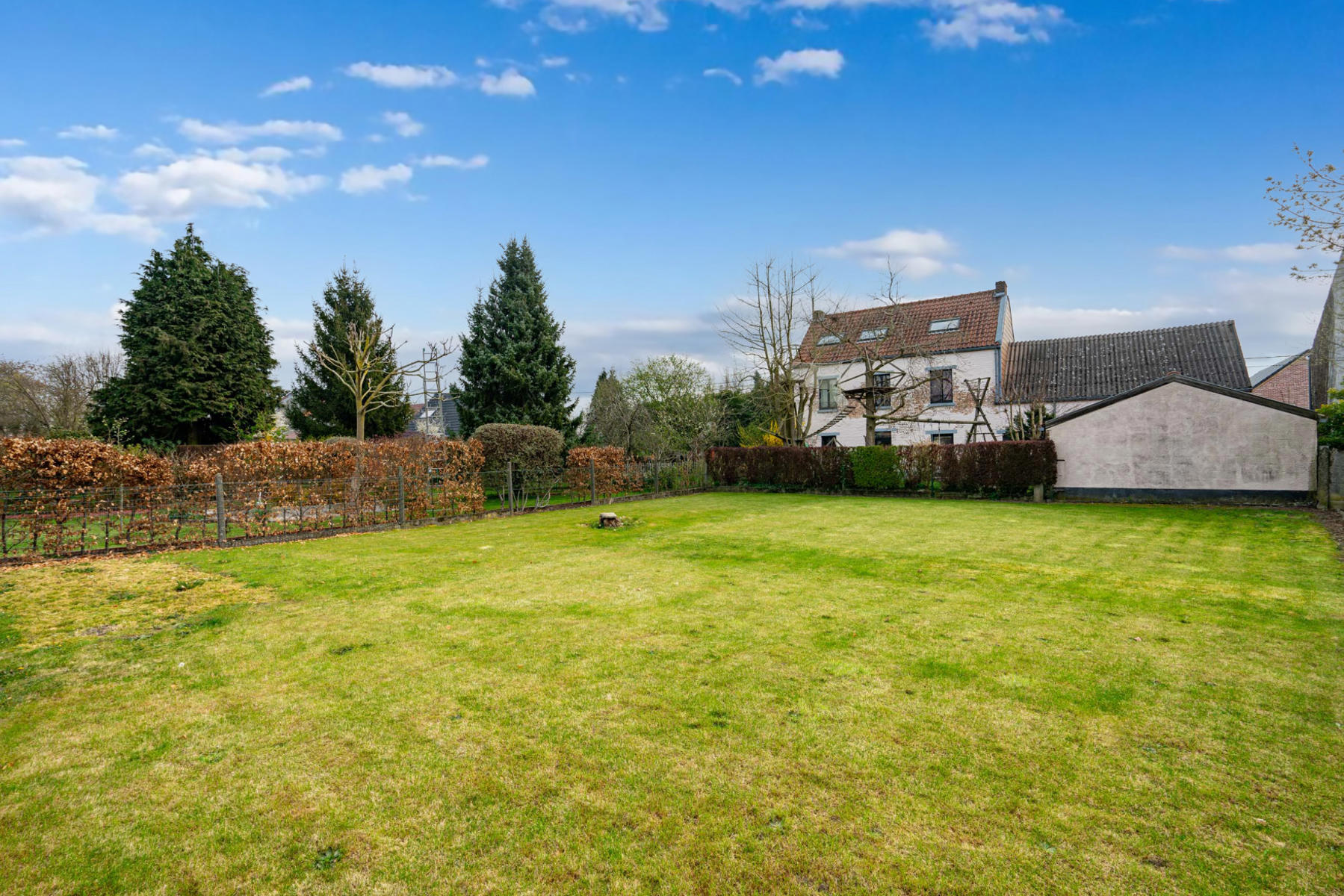 | Jardin (détails) | est, déclivité plat, aménagé pelouse, Fermé clôtures palissades haies |
