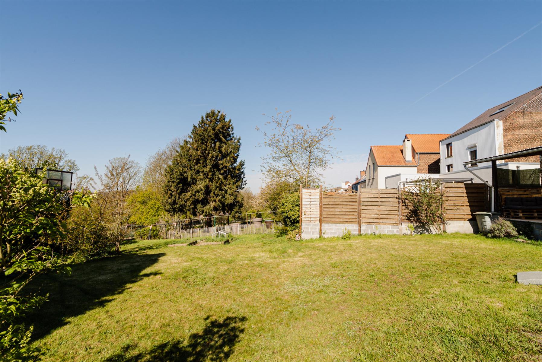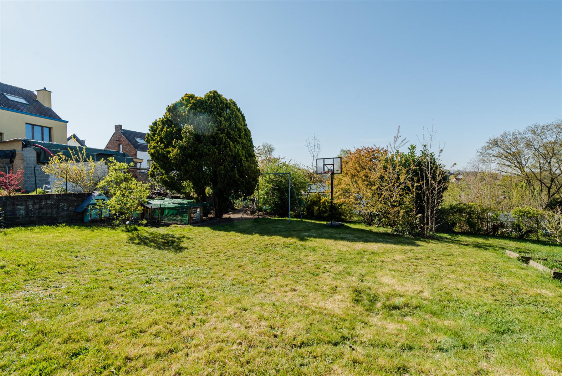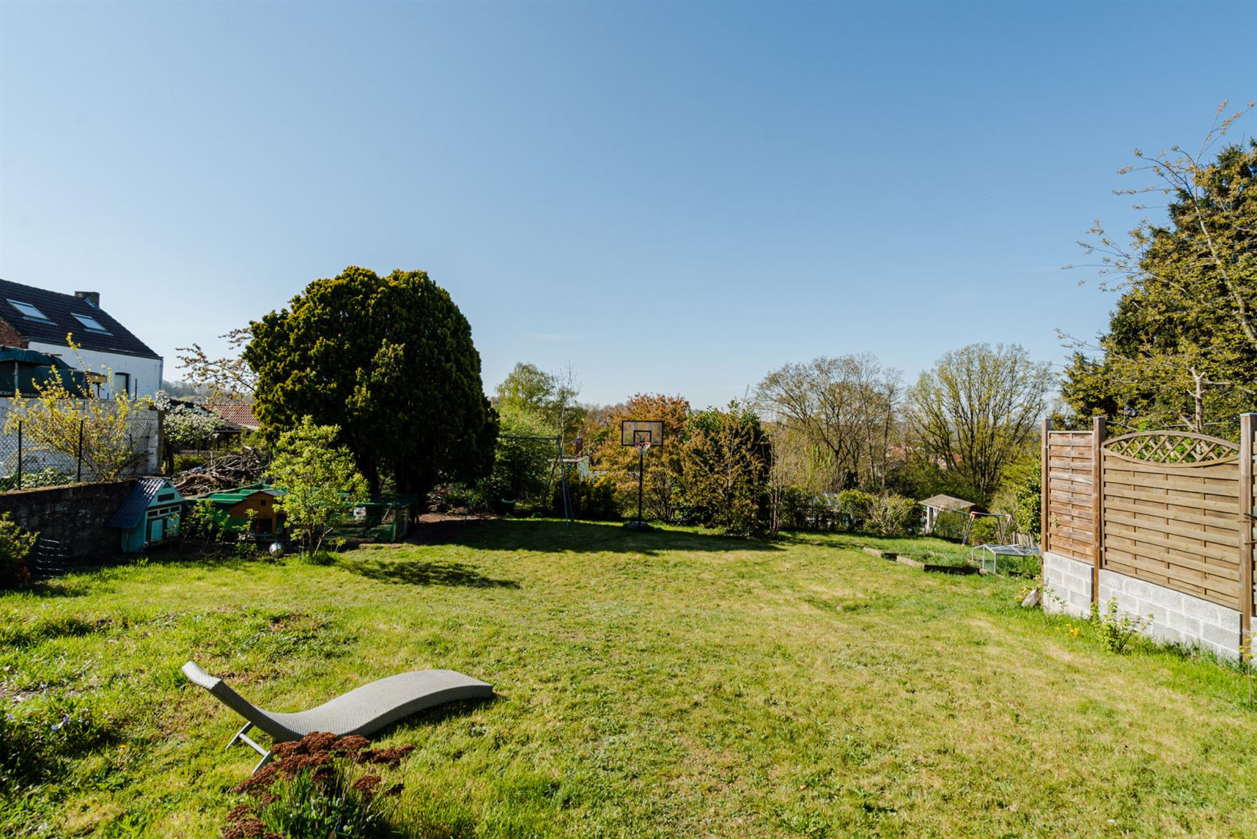 | Jardin (détails) | sud, déclivité en palier, aménagé pelouse, Fermé haies clôtures muret |