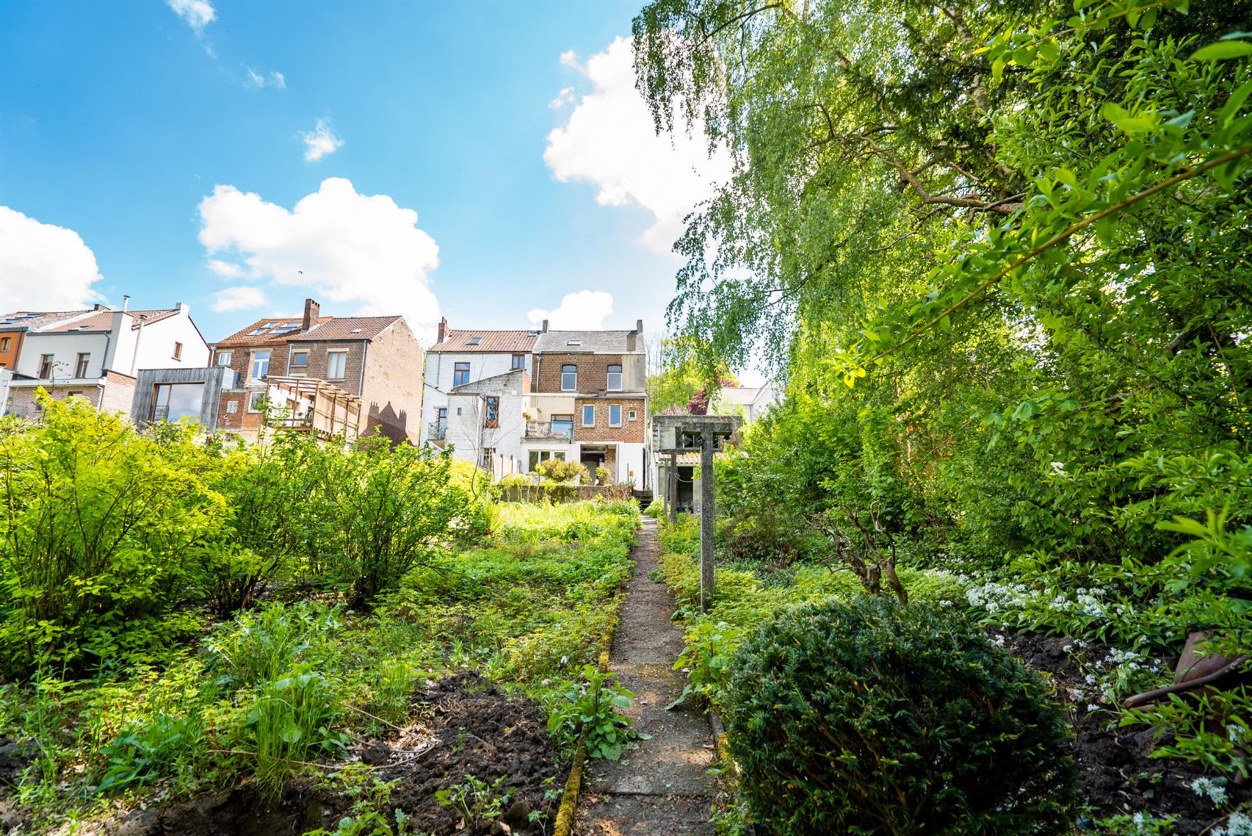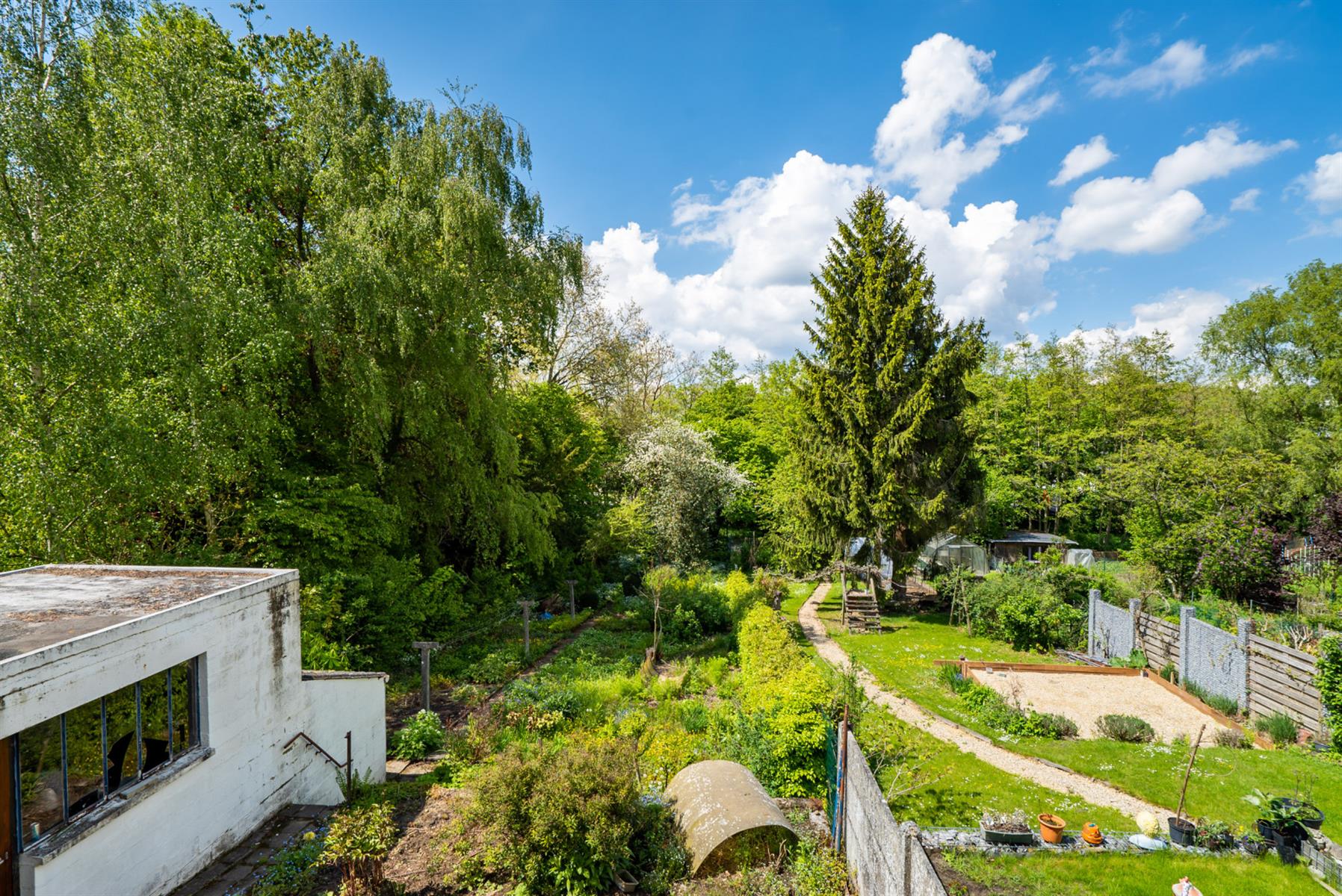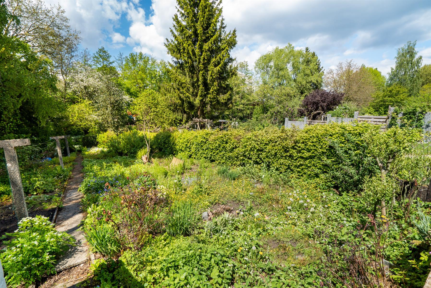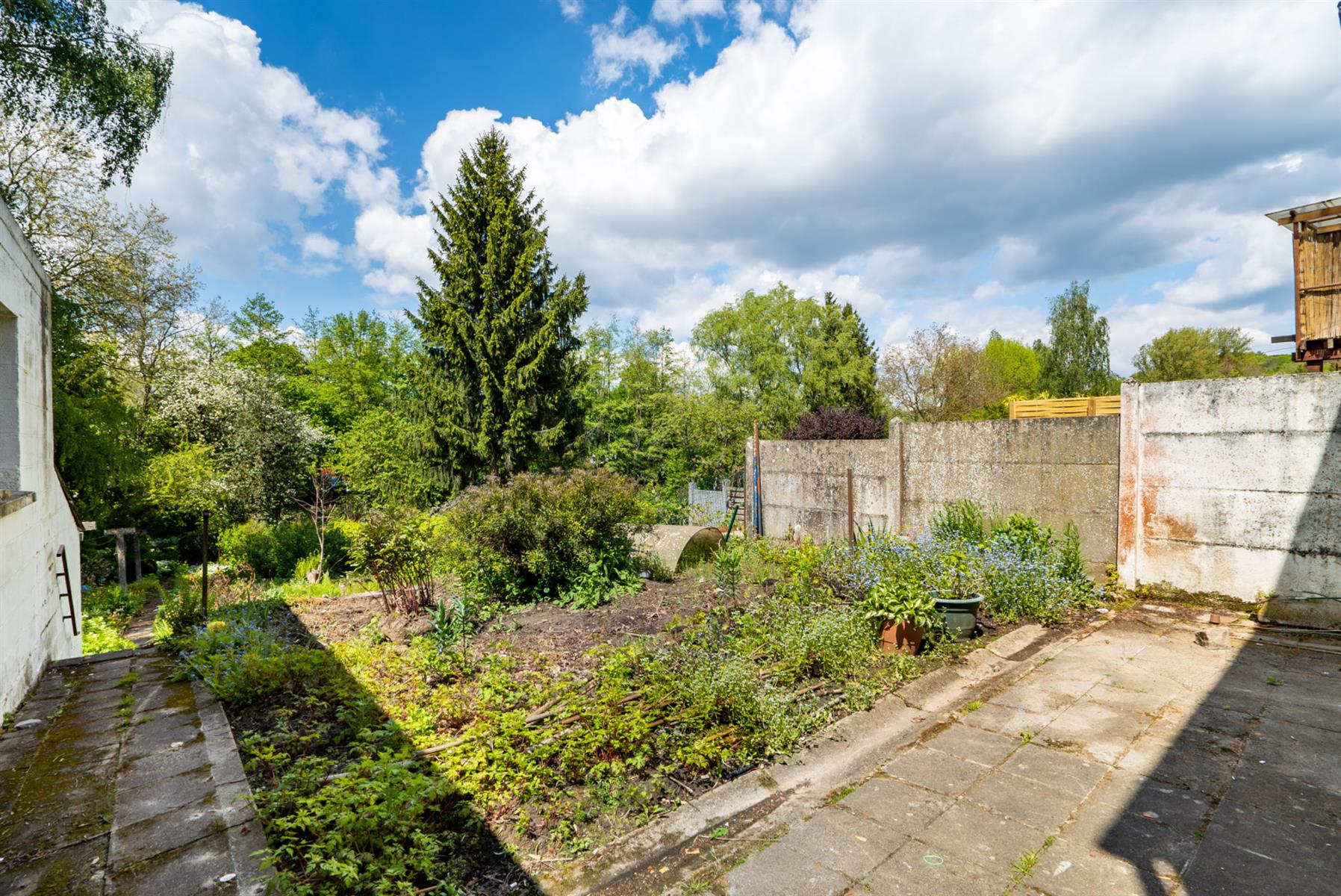 | Jardin (détails) | nord-ouest, légèrement en pente, fermé palissades haies clôtures, À aménager |