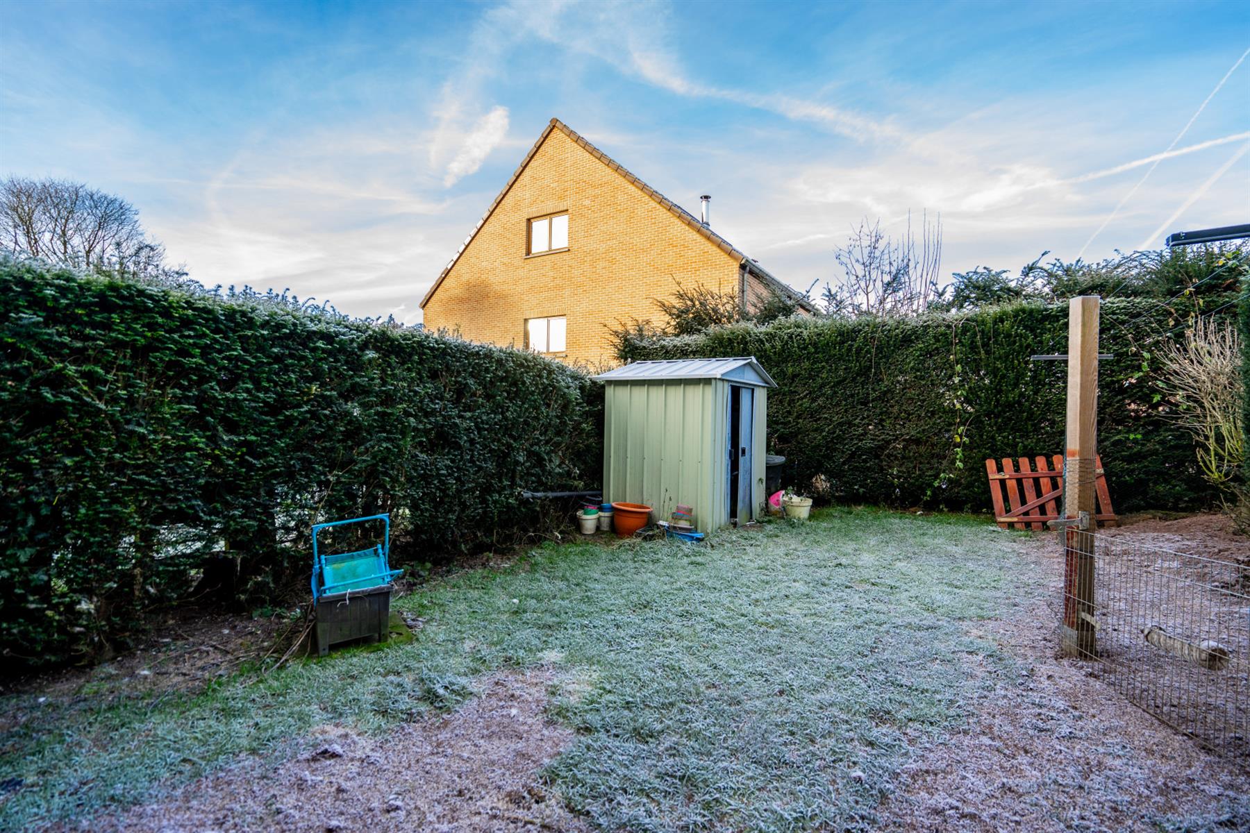 | Jardin (détails) | nord-ouest, déclivité plat, aménagé pelouse, Fermé haies clôtures |