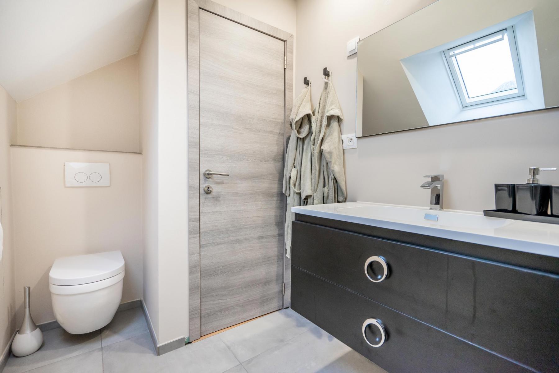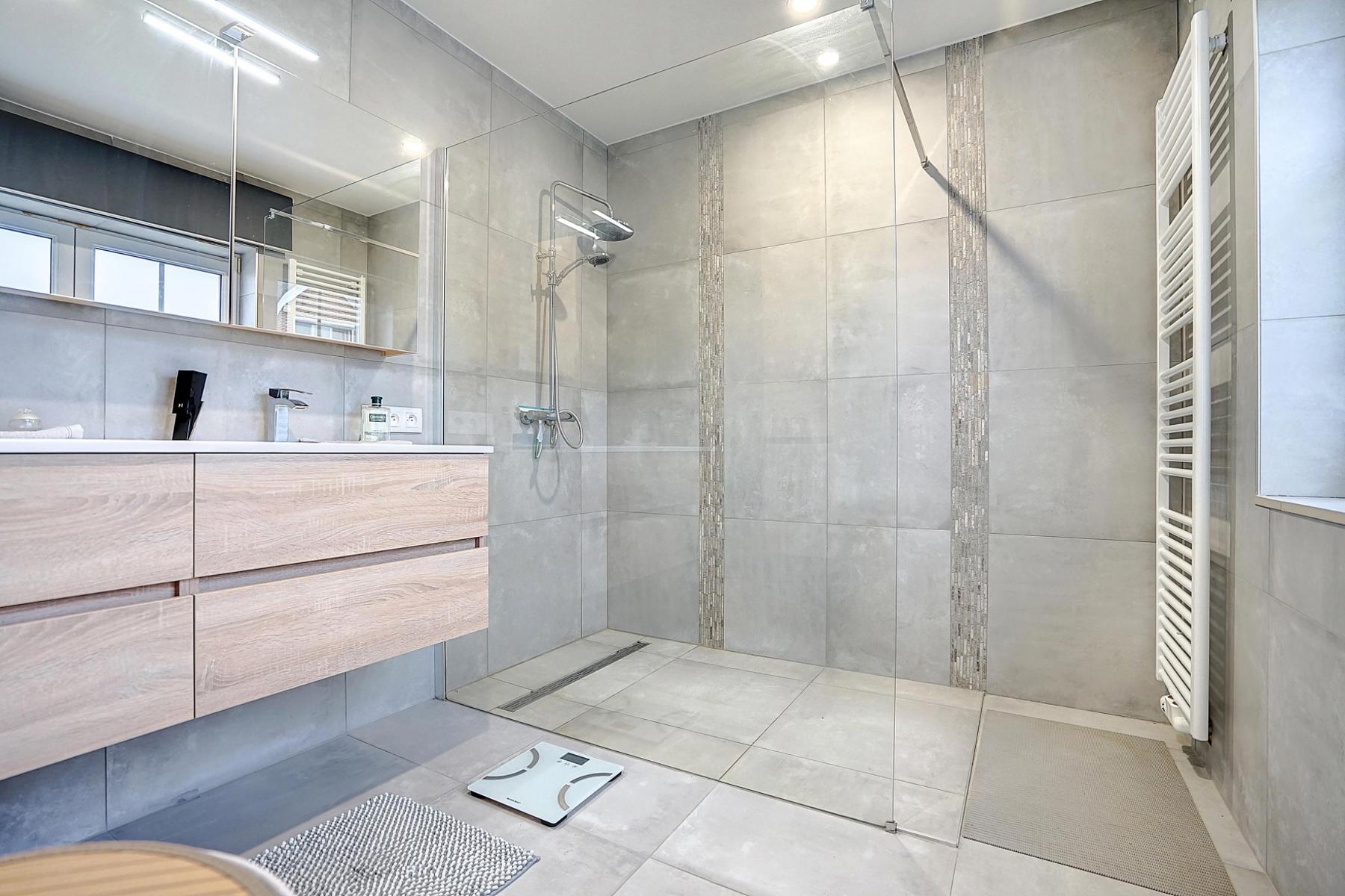 OPTION OPTION OPTION Idéalement située à proximité des commodités et du centre de Genappe (400m), cette magnifique villa entièrement rénovée avec gout en 2019 vous séduira par ses excellentes prestations et son charme ! Elle offre une cuisine hyper équipée faite sur mesure et ouverte sur le salon et sur une vaste salle à manger intégrée avec vue sur l'extérieur, une suite parentale comprenant de nombreux placards encastrés et une salle de douche moderne avec douche italienne. Une buanderie et un wc séparé complètent l'agencement au rez de chaussée. Au premier étage, vous y trouverez un hall de nuit desservant 2 belles chambres dont une avec placards encastrés et une salle de bain avec toilette. D'un point de vue technique, elle est équipée d'un chauffage central au gaz de ville, de châssis double vitrage PVC partout, de volets électriques solaires et d'une VMC double flux. Les façades sont isolées et l'électricité est conforme ! Très peu énergivore, PEB : B. À l'extérieur, vous profiterez d'une agréable terrasse de 24m² avec toiles solaires et chauffe terrasse et d'une grande terrasse (110m²) bien ensoleillée avec piscine (4mx7,5m) + volets chauffée par pompe à chaleur et d'une annexe de rangement ! Parking privé et sécurisé grâce à son beau portail. Cette villa coup de cœur ne vous laissera pas indifférent ! Elle vous séduira par la qualité des matériaux, la convivialité de l'espace ainsi que par sa localisation idéale. Une visite ? Contactez Marie au 0474/885930.