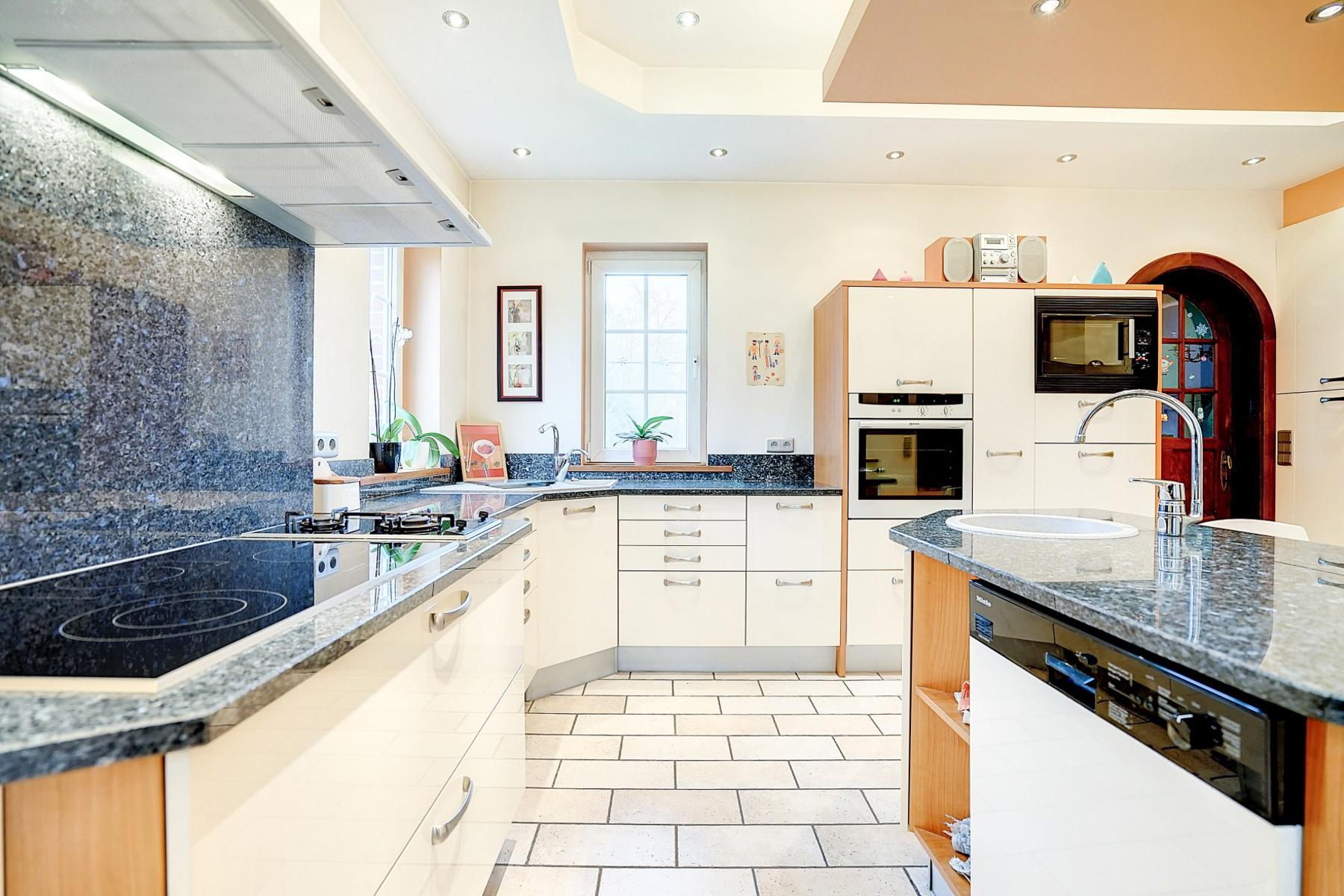 La maison propose des pièces de réceptions lumineuses dont un séjour de +/- 43m² ainsi qu'une cuisine moderne et ouverte qui donne accès vers le jardin, un vaste hall d'entrée et un salon de +/-20m².