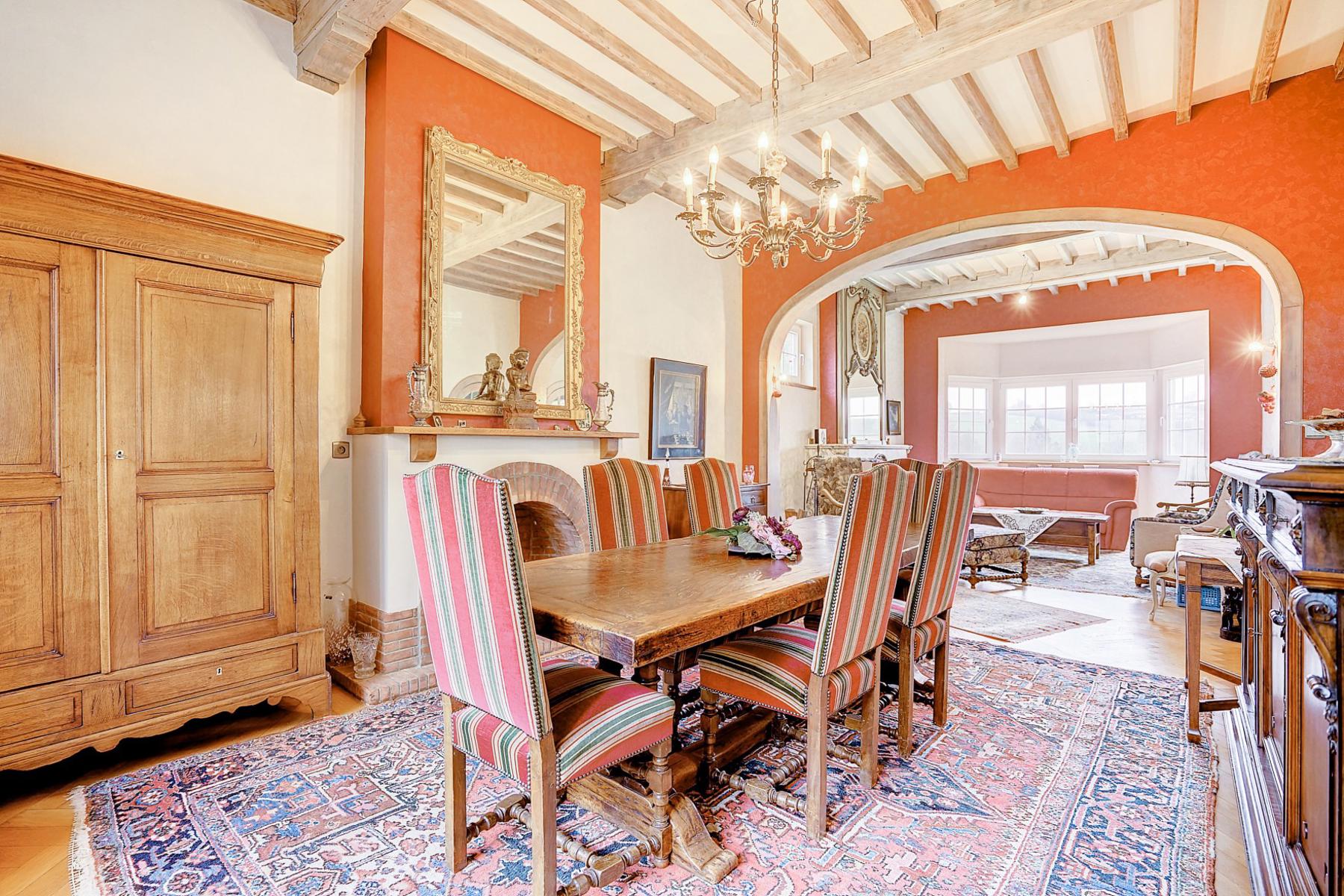 Aux étages, on retrouve six chambres, trois pièces d'eau dont une encore à aménager ainsi que des greniers de rangement. Un garage avec rangements, une buanderie buanderie, une chaufferie et de belles caves complètent la maison.