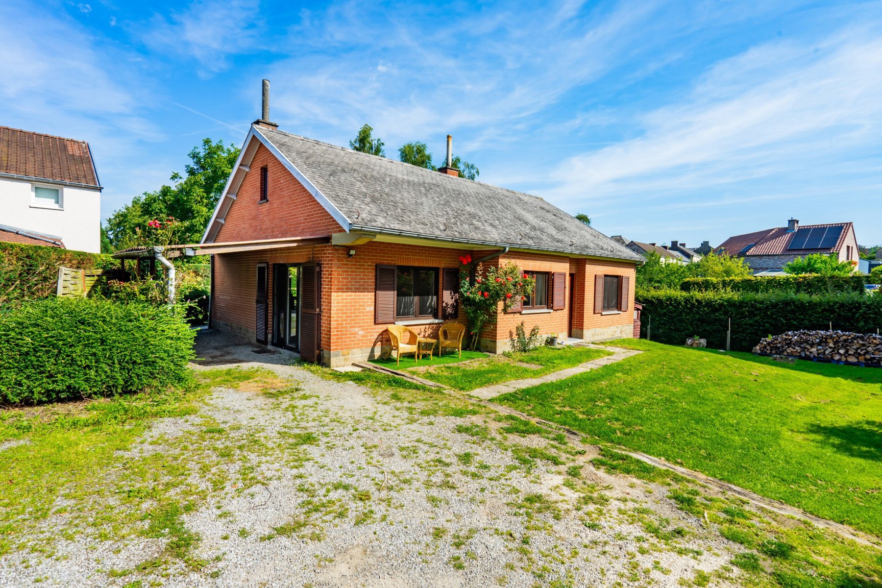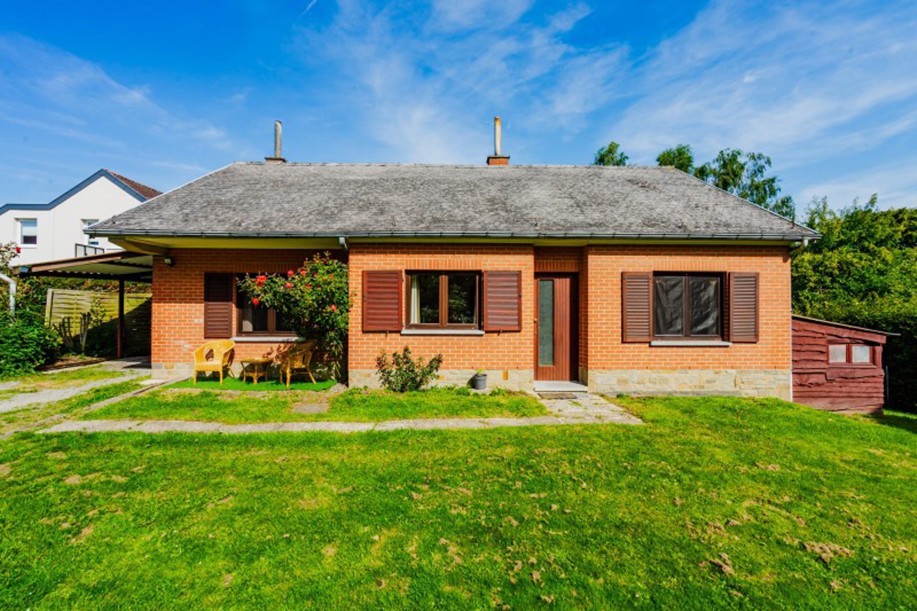 OPTION OPTION OPTION OPTION ! Une visite? Contactez Laurence au 0471/434859. Venez découvrir cette jolie villa de 1975 aménagée de plain-pied, située sur les hauteurs du très charmant village de Sart-Messire-Guillaume, à quelques minutes du centre de Court-Saint-Étienne et à 2 pas des plus beaux sentiers de randonnée. Sise sur un terrain de fond d'une superficie de 6 ares 71 ca, accessible via une allée, cette maison saura vous séduire grâce à ses pièces lumineuses et son agencement pratique. Elle propose un séjour de 30m² avec poêle à bois, une cuisine de 2022 équipée, 3 chambres et une salle de bains rénovée. À l'étage se trouve un grenier aménageable comprenant une pièce de 14m² et une chambre de 18m² avec lavabo, accessibles via escalier escamotable. Le sous-sol est constitué de plusieurs caves saines avec espaces buanderie et chaufferie. En extérieur, vous profiterez d'une spacieuse terrasse en partie sous pergola, d'un espace couvert pouvant servir de carport ou de seconde terrasse orientée sud-ouest, d'un jardin facile d'entretien et d'un abri de rangement. Technique: chauffage central au mazout - châssis PVC de 2014 - citerne eau de pluie. Habitable de suite, cette maison n'attend plus que vos valises ! Une visite? Contactez Laurence au 0471/434859 https://www.ccv-immobilier.be/fr/bien/a-vendre/maison/1490-court-saint-etienne/5494844