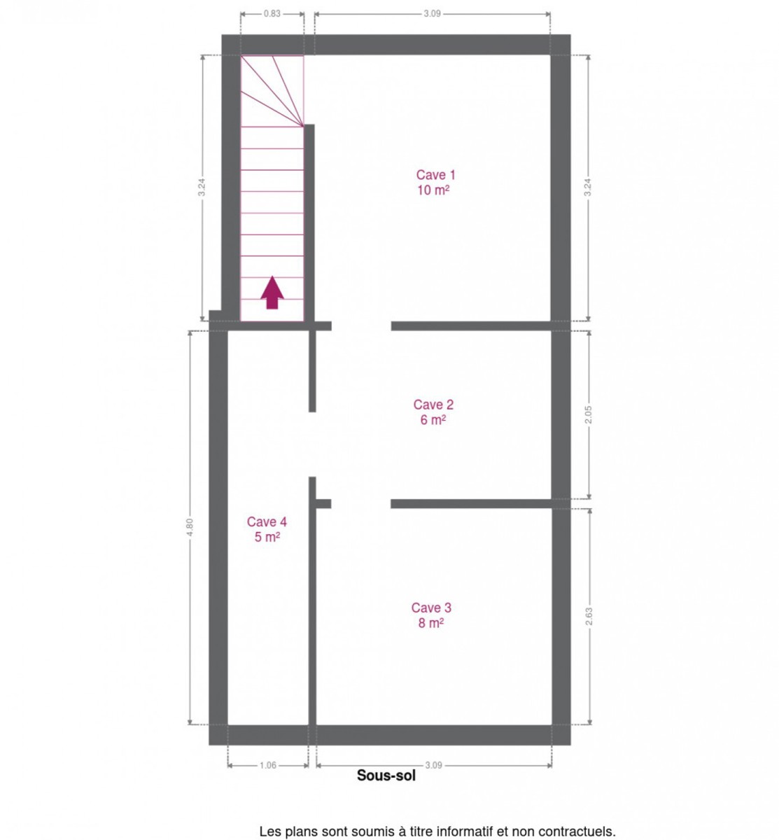 | Caves (détails) | 25m² - saines |
