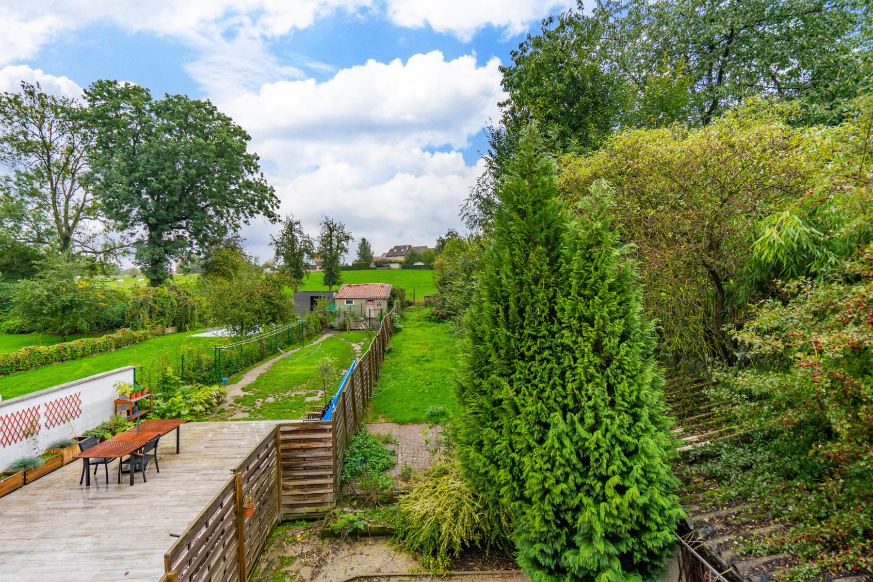 Jardin (détails) | sud, déclivité, Aménagé pelouse, fermé clôtures palissades haies |